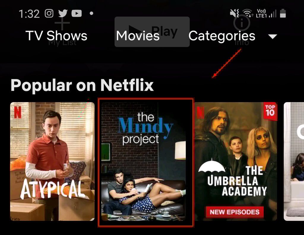 - AçNetflix uygulamasıVe bir film veya gösteri başlat.