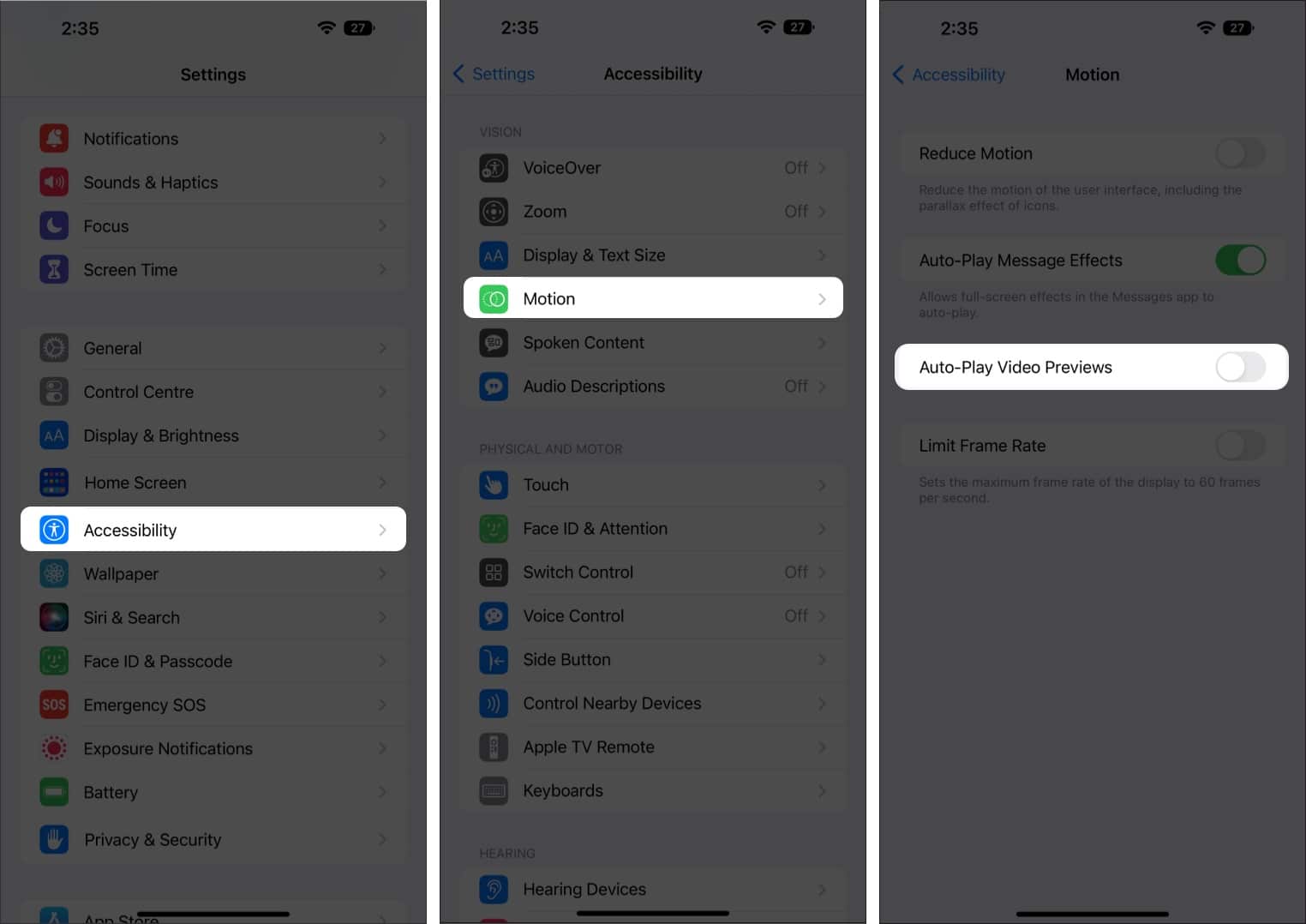 Not:Erişilebilirlikteki hareket bölümünden otomatik oynatma video önizlemelerini kapattıysanız, video otomatik oyun ayarları otomatik olarak devre dışı bırakılır.