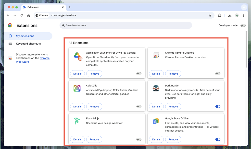 - Sorunlu eklentileri tanımlamak için Chrome'u kullanırken uzantıları birer birer yeniden etkinleştirin. SeçmeKaldırmaksorunlara neden olan eklentileri devre dışı bırakmak.