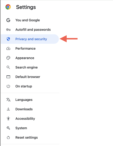 - Açık Chrome'sAyarlarpanel ve seçinGüvenlik ve Gizlilikkenar çubuğunda.
