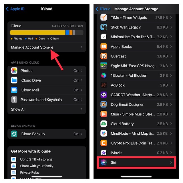 Daha önce depolanan Siri verilerini iCloud'dan silmek istiyorsanız, şu adımları izleyin: