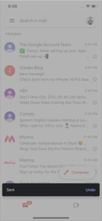 İOS 16 çalıştıran iPhone'da posta uygulamasında gönderilen bir e -posta nasıl geri alınır 16