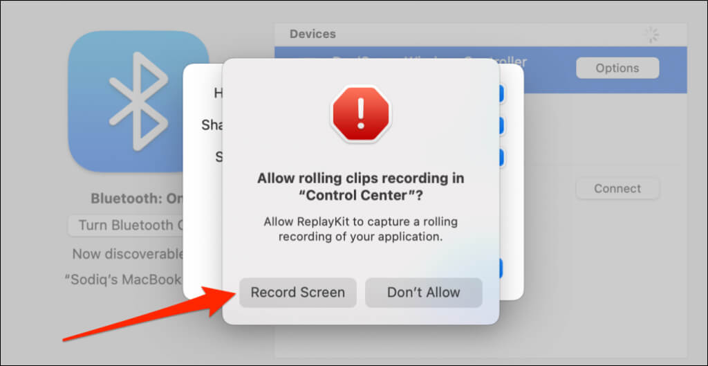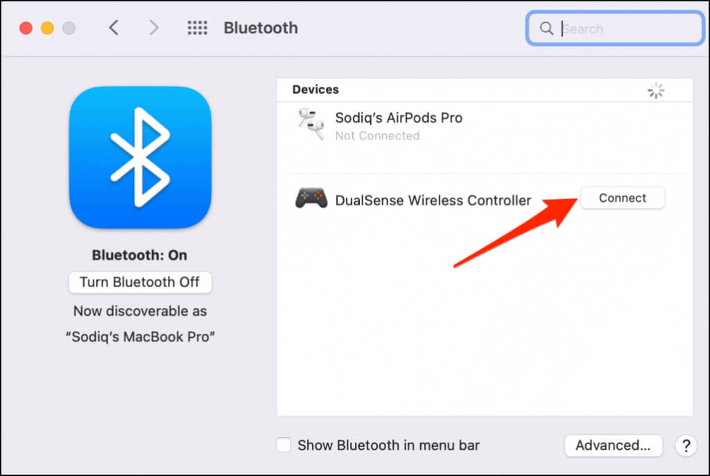 - Mac'iniz Bluetooth Ayarları menüsünde bir “DualSense Kablosuz Denetleyici” algılamalıdır. SeçinBağlamakdevam etmek için düğme.