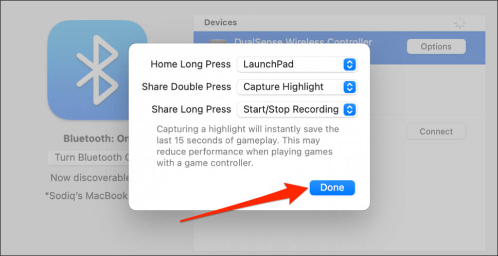 Windows'un aksine MacOS, PS5 denetleyicisini “DualSense Kablosuz Denetleyici” olarak doğru bir şekilde tanıyor ve etiketliyor.