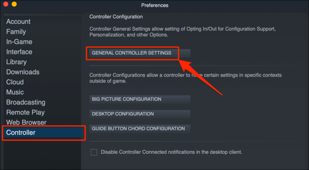 - Denetleyiciyi bilgisayarınıza bağlayın ve Steam'in ayarlarını açın.
