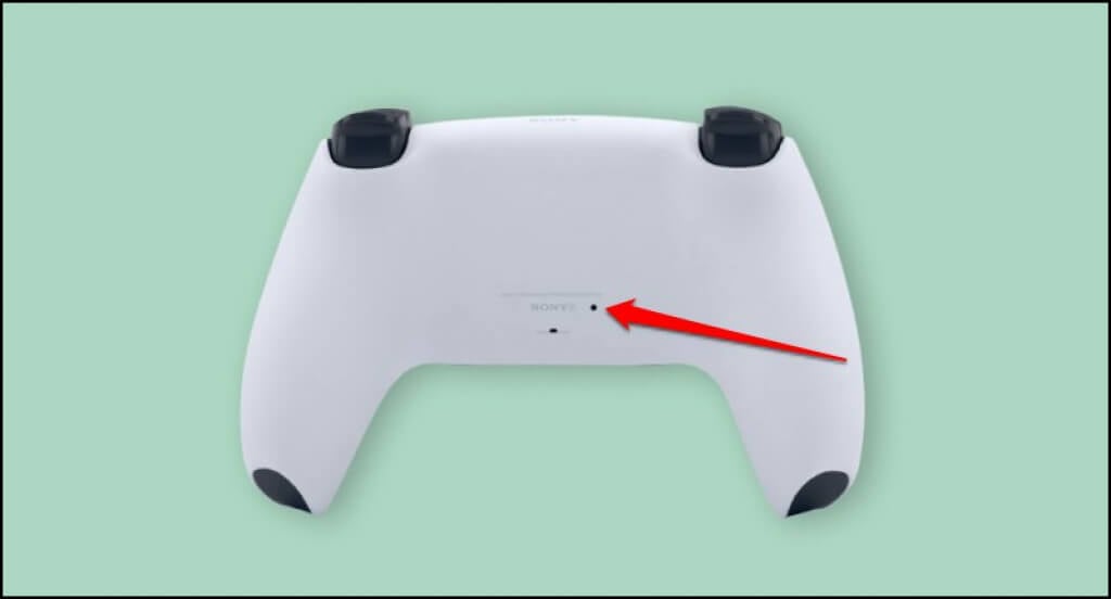 Denetleyicinin arkasında küçük bir daire şeklinde delik bulun. Deliğin içinde DualSense denetleyicisinin sıfırlama düğmesi bulunur. Deliğe bir pim veya kipi takın ve sıfırlama düğmesine 3-5 saniye basın.