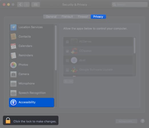 Erişilebilirlik: AçıkSistem Tercihleri → Güvenlik ve Gizlilik → Gizlilik → Erişilebilirlik. Değişiklik yapmak için kilit simgesini tıklayın.