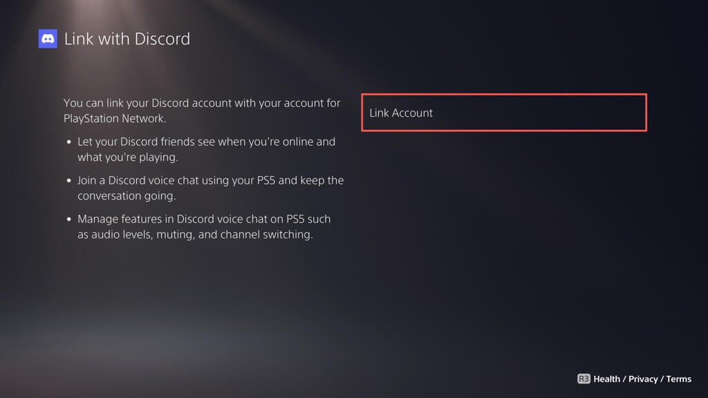 Ancak, PS5 için uyumsuzluk, beklediğinizle karşılaştırıldığında farklı çalışır. Yeni başlayanlar için, konsolda yükleyebileceğiniz bir anlaşmazlık uygulaması yoktur. Bunun yerine, anlaşmazlık hesabınızı PSN (PlayStation Network) hesabınıza bağlarsınız. Ardından, telefonunuzda veya masaüstünüzde bir anlaşmazlık sesli sohbetine katılır ve PS5'inize aktarırsınız.