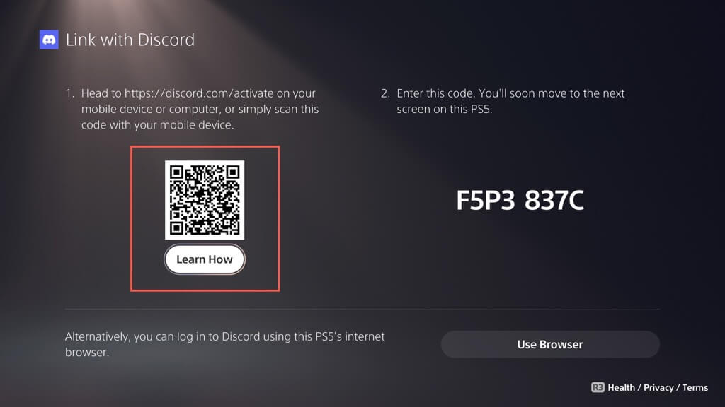 Not: Hesapları ilişkilendirme konusunda sorun yaşıyorsanız,Tarayıcı kullanınPSN ve Discord Hesaplarınızı konsolun kendisine bağlamak için ekrandaki talimatları seçin ve izleyin.