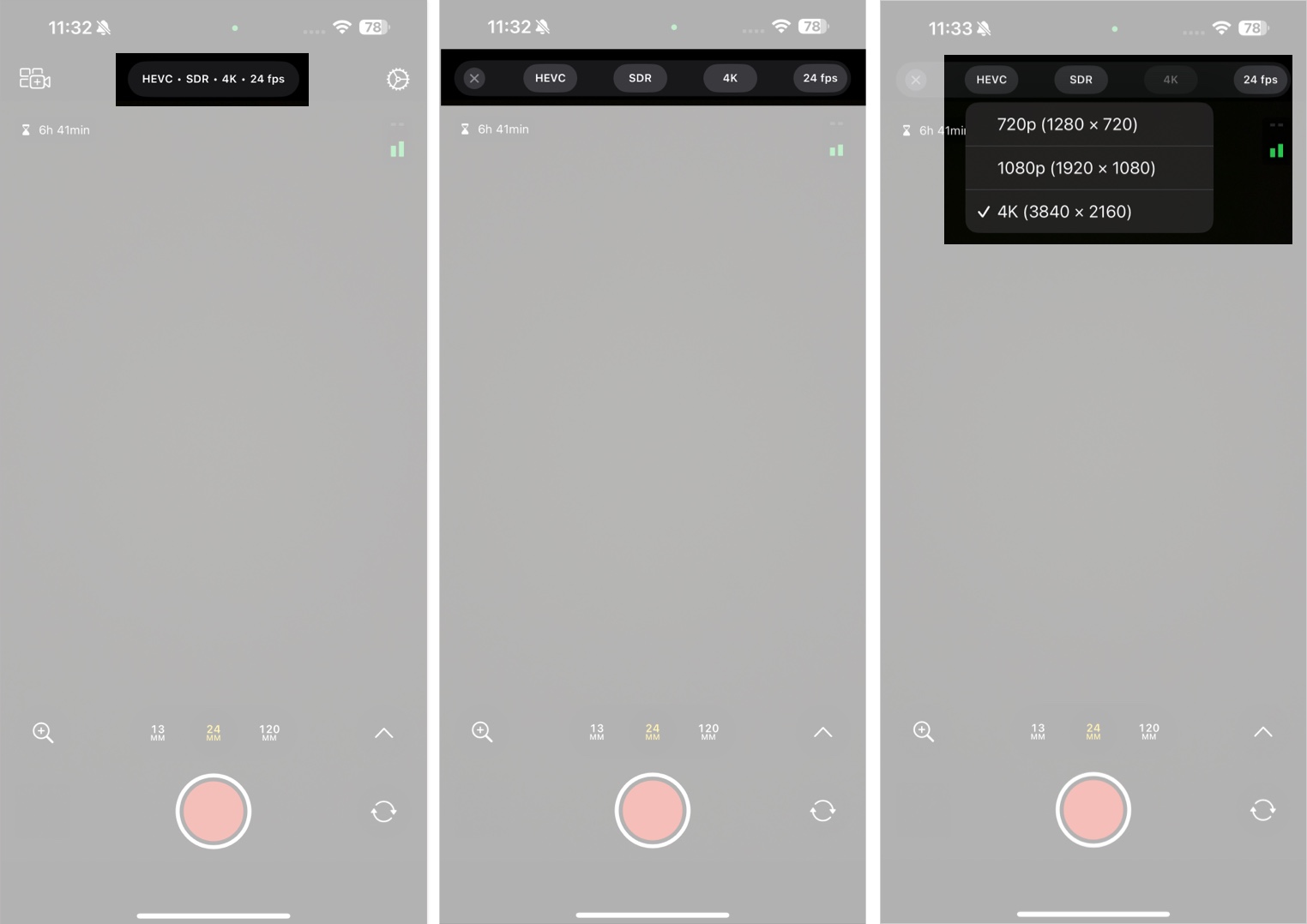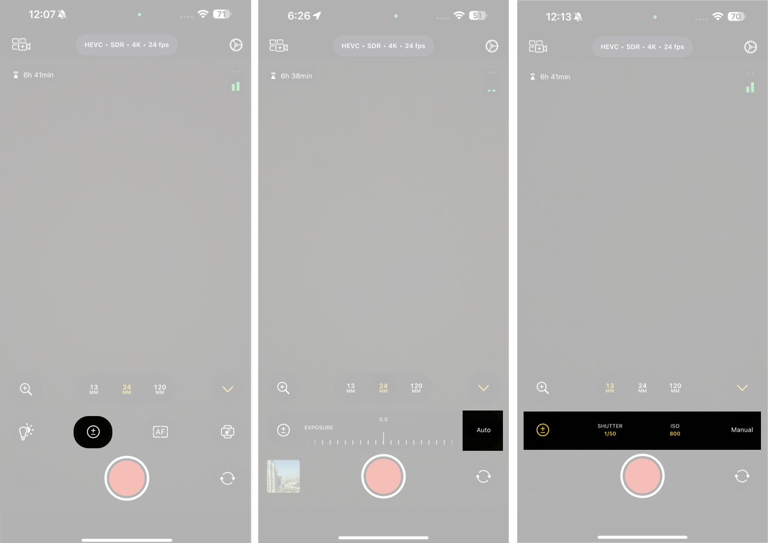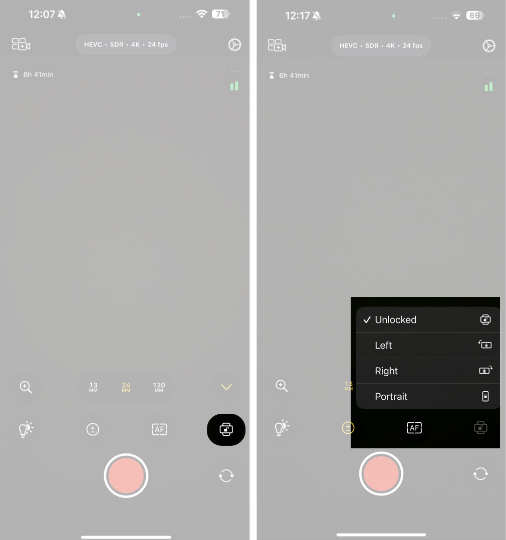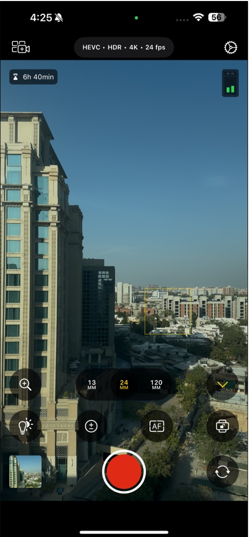 Varsayılan iPhone kamera uygulamasının aksine, buradaki lens anahtarları, 13mm, 24mm ve benzeri gibi odak uzunluklarıyla etiketlenmiştir. Genellikle, 24-26mm standart 1x kameranızdır, 13-15mm geniş açılı 0.5x kameranızdır ve 50mm'nin ötesinde herhangi bir şey telefoto zoom kameranızdır.