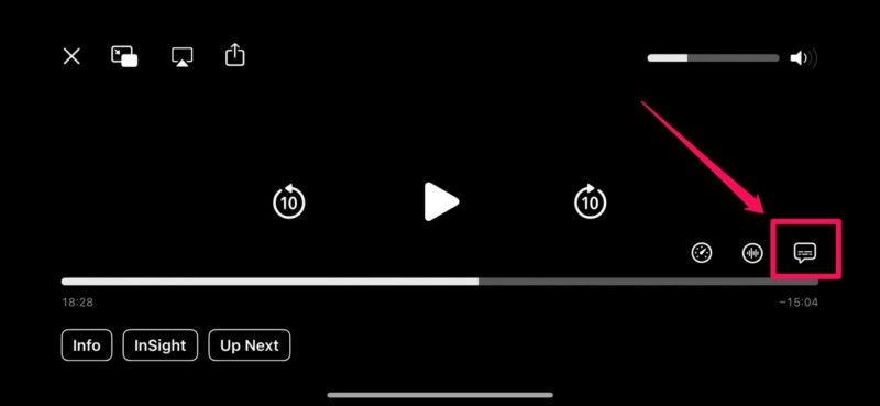 2.İçindePeyzaj modu, dokununAltyazılar düğmesiekranın sağ alt köşesinde.