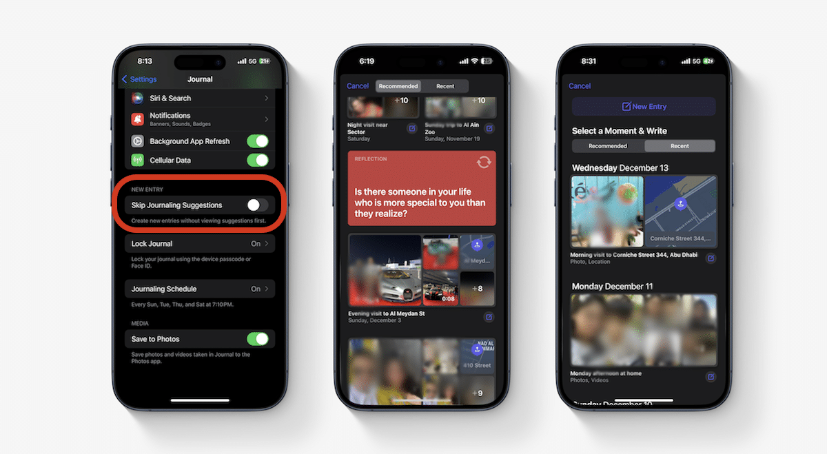 En son iOS 17.2 güncellemesinde Apple nihayet dergi uygulamasını yayınladı. Düşüncelerinizi, duygularınızı, gezilerinizi ve diğer etkinlikleri ve etkinliklerinizi belgelemeniz için tasarlanan Journal uygulaması, zihinsel sağlığınızla ilgilenmenizi sağlayan yansıtıcı bir çıkış olarak çalışır.