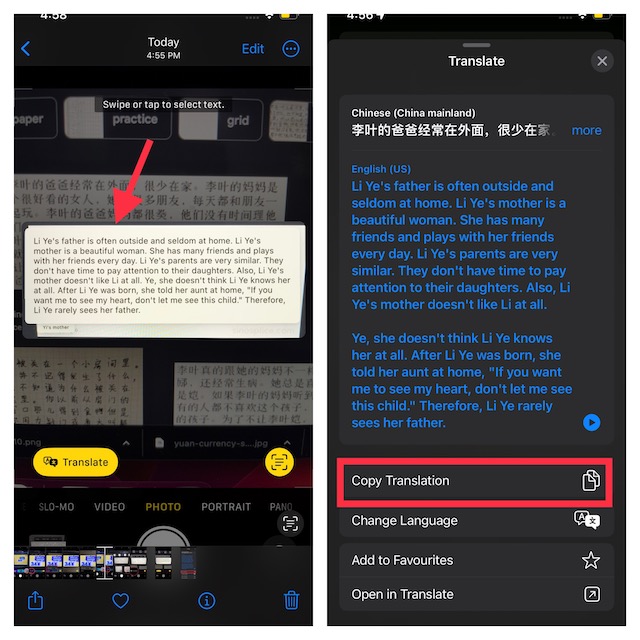 6.Sonunda, kamera uygulamasını kapatın ve ardından kopyalanan çeviriyi istenen uygulama aracılığıyla paylaşın veya tercih edilen konumda kaydedin.