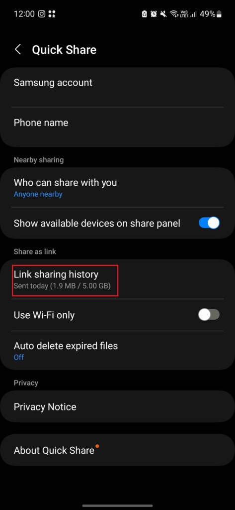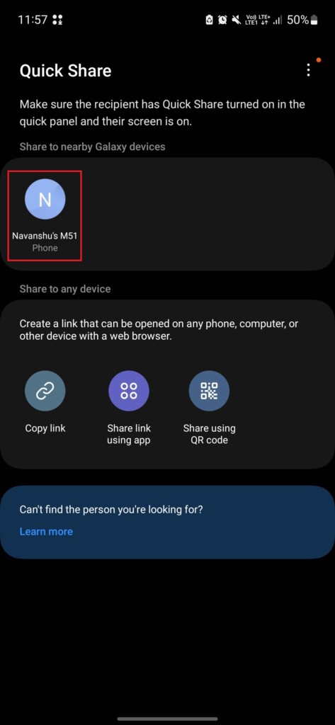 Samsung Quick Share, dosyaları paylaşmak için iki seçenek sunar: