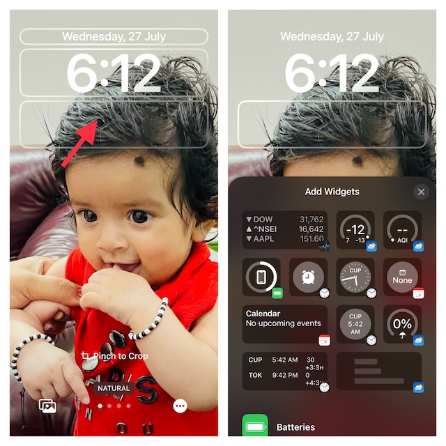 Widgets seçicisine erişmek için tarih ve saat okumasına dokunun ve eklemek istediğiniz widget'a dokunun.