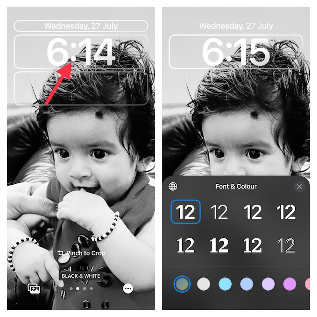 İPhone kilit ekranınızdaki yazı tipini ve rengi özelleştirmek için üzerine dokununzamanYazı tipini ve renk penceresini ortaya çıkarmak için okuma, bundan sonra istenen yazı tipini ve rengi seçin. Sonra dokununXpencereyi seçmek için.
