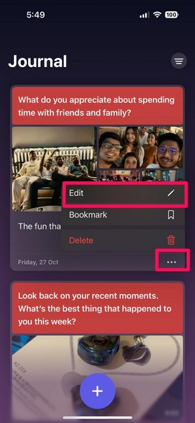 İPhone 17'deki iPhone'unuzdaki dergi uygulamasında günlük girişlerinizin üzerinden geçerken, belirli bir girişte bir şeyi değiştirmeniz gerektiğini fark ederseniz, bu girişi kolayca düzenleyebilir ve istediğiniz değişikliği yapabilirsiniz. IOS 17 cihazınızdaki dergi uygulamasındaki günlük girişlerinizi düzenlemek için aşağıdaki adımları izleyin: