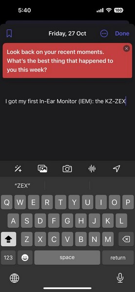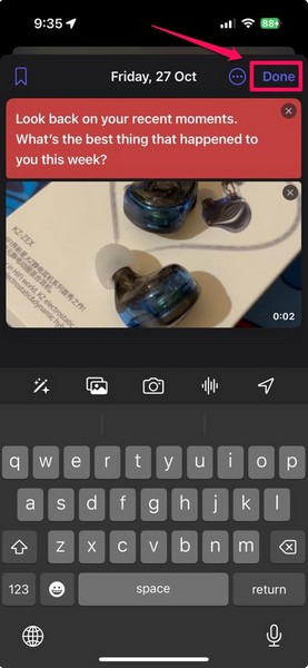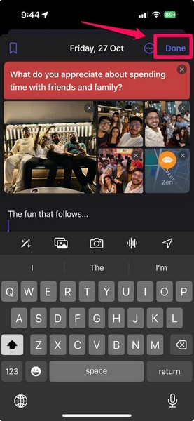 İPhone 17'deki iPhone'unuzdaki dergi uygulamasına günlük girişinden memnun kaldığınızda,TamamlamakUygulamaya kaydetmek için sağ üstte düğme.