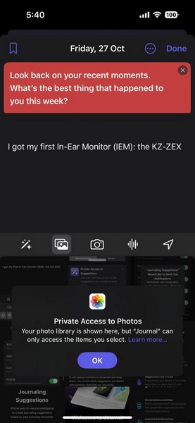 Gizliliğe gelince, bahsettiğimiz Apple olduğu için, günlük girişlerinize fotoğraf veya video eklerken gizlilik endişeleri konusunda endişelenmenize gerek yok. Apple, dergi uygulamasındaki günlük önerileri özelliğinin, kullanıcıların önerileri iyileştirmek için uygulamanın iPhone'larında hangi verilere erişebileceğini seçmelerine izin verdiği için kullanıcı verilerini korumak için tasarlandığını söylüyor.