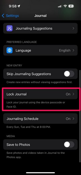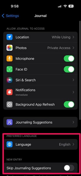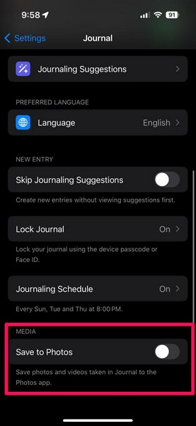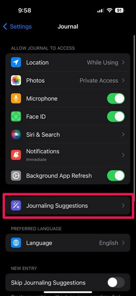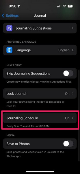 Bununla birlikte, iPhone'unuzdaki dergi uygulamasından iOS 17'deki günlük işlem programını etkinleştirmek için aşağıdaki adımlara göz atın: