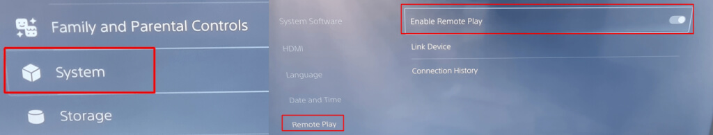 - PS5'inizde geri dönAyarlar>Sistem>Uzaktan oyun.