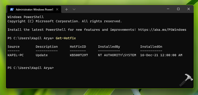 Windows Terminalini kullanarak Windows 11'inizdeki yüklü güncellemeleri bulmak için kullanabileceğiniz başka bir alternatif yöntem. Şu adımları izleyin: