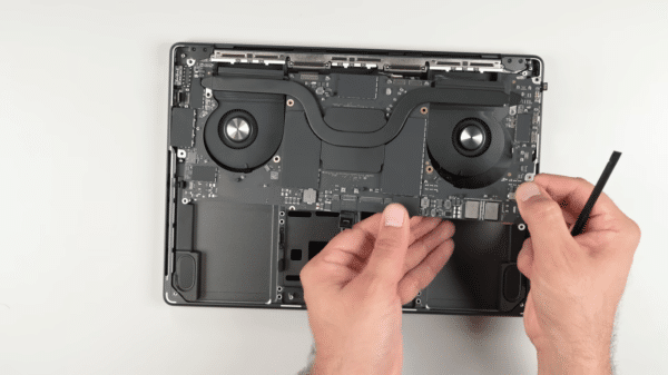 M3 Pro'nun çift fan konfigürasyonu, zorlu iş yükleri sırasında ısı birikimini etkili bir şekilde yöneterek verimli ısı dağılımı sağlar. Buna karşılık, nispeten daha yavaş olan M3 varyantı, tek bir fan ve daha kısa bir soğutucu entegre eder. Tek bir fan ile ergonomik bütünlüğü korumak için Apple, mantık kartını stratejik olarak genişletti. Bu tasarım nüansları, uzun süreli kullanım altında bile M3 MacBook Pro'nun sorunsuz işleyişine katkıda bulunur.