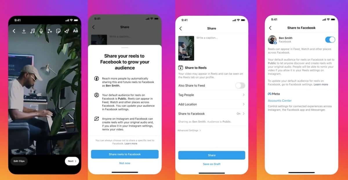 Instagram ve Facebook'ta hesapları olan içerik oluşturucular artık her iki platformda da aynı anda crosspost makaraları olabilir. Şimdi, bir kullanıcı bir Instagram makarası oluşturacağında, yeni bir istem, makarayı Facebook'ta paylaşmak isteyip istemediklerini soracaktır. Crossposting'i seçtikten sonra, kullanıcı ayarları değiştirmedikçe tüm makaralar otomatik olarak her iki platformda da yayınlanır.