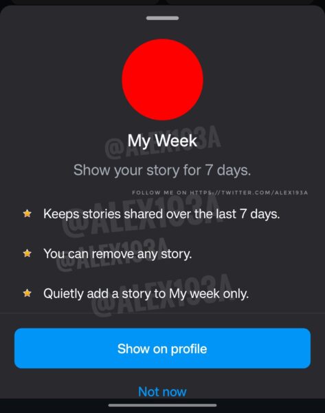 - Kullanıcılar bir hafta boyunca görünür kalmak için belirli hikayeleri seçebilir.