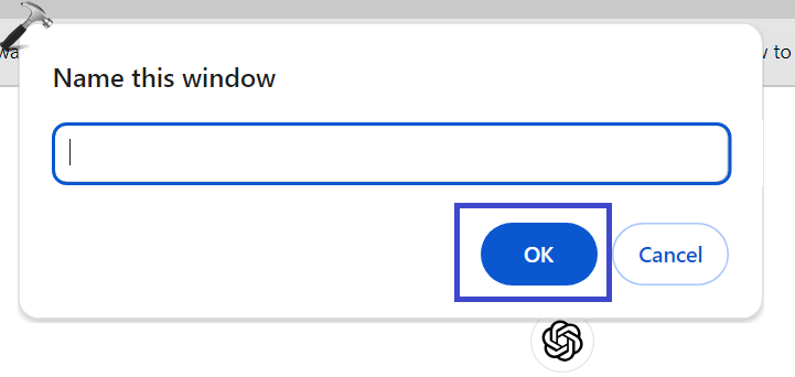 4. Pencere için özel bir ad yazmanıza izin veren bir iletişim kutusu görünecektir. Seçtiğiniz bir ad girin ve Tamam'ı tıklayın.