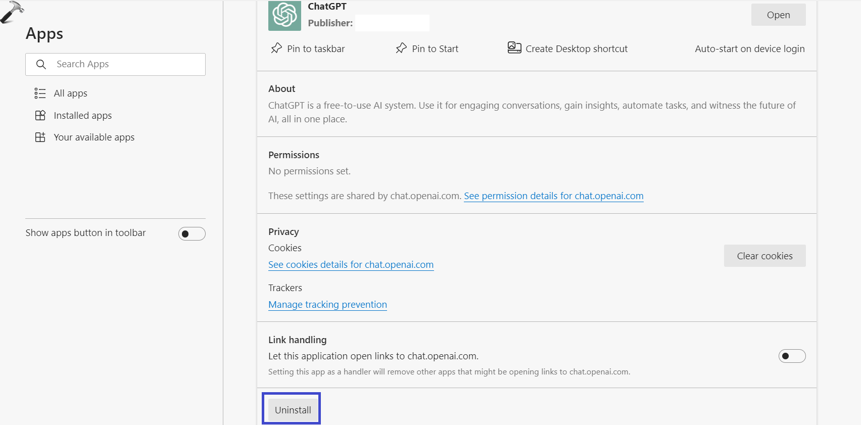 Windows 11/10'da chatgpt'i uygulama olarak yüklemenin iki basit yolu: