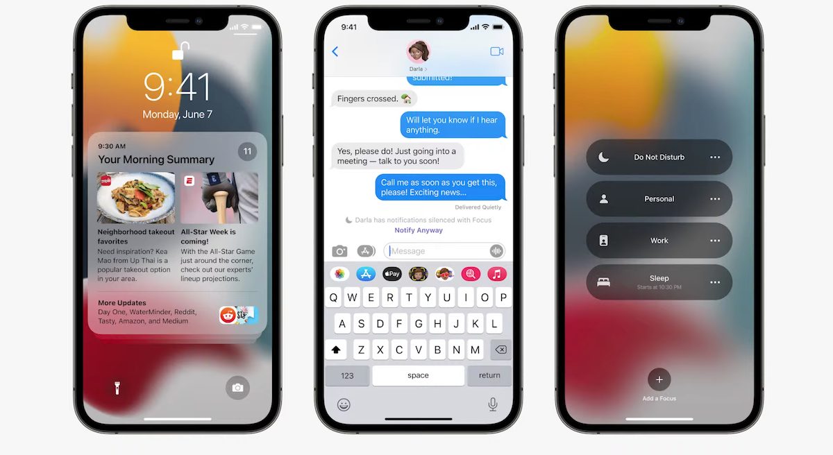 IOS 15, WWDC 2021'de faceTime, mesajlar, haritalar, bildirimler, hava durumu, cüzdan, safari, sağlık ve daha fazlası için bir ton yeni özellik ve iyileştirme ile duyuruldu. Güncellemeden önemli noktalar arasında odak modu, canlı metin, paylaşım ve yeniden tasarlanan bildirimler bulunur.