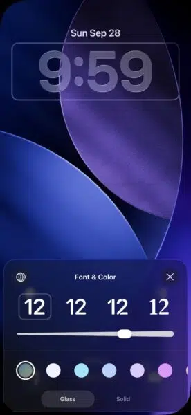 Etkinin daha fazla öne çıkmasını isteyen kullanıcılar için yeni bir"Cam" saat stiliÖzelleştirme seçeneklerinde. Bu stil, daha güçlü kırılma ve renk adaptasyonu ile cesur, şeffaf rakamlar kullanır, bu da sıvı cam etkisini daha belirgin hale getirir.