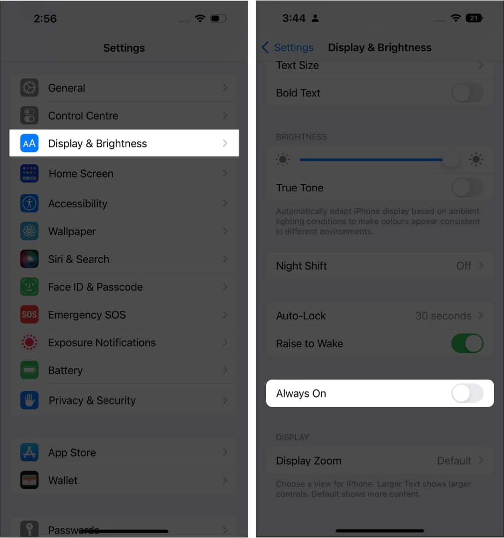 Kuşkusuz, yeni iPhone 14 Pro'daki her zaman açık ekran heyecan verici. Ancak iPhone duvar kağıdınızın otomatik olarak siyah bir zemine değişmesine neden olabilir. Bu nedenle, her zaman açık ekranı kapatmayı deneyin ve sorunun çözülüp çözülmediğini kontrol edin.