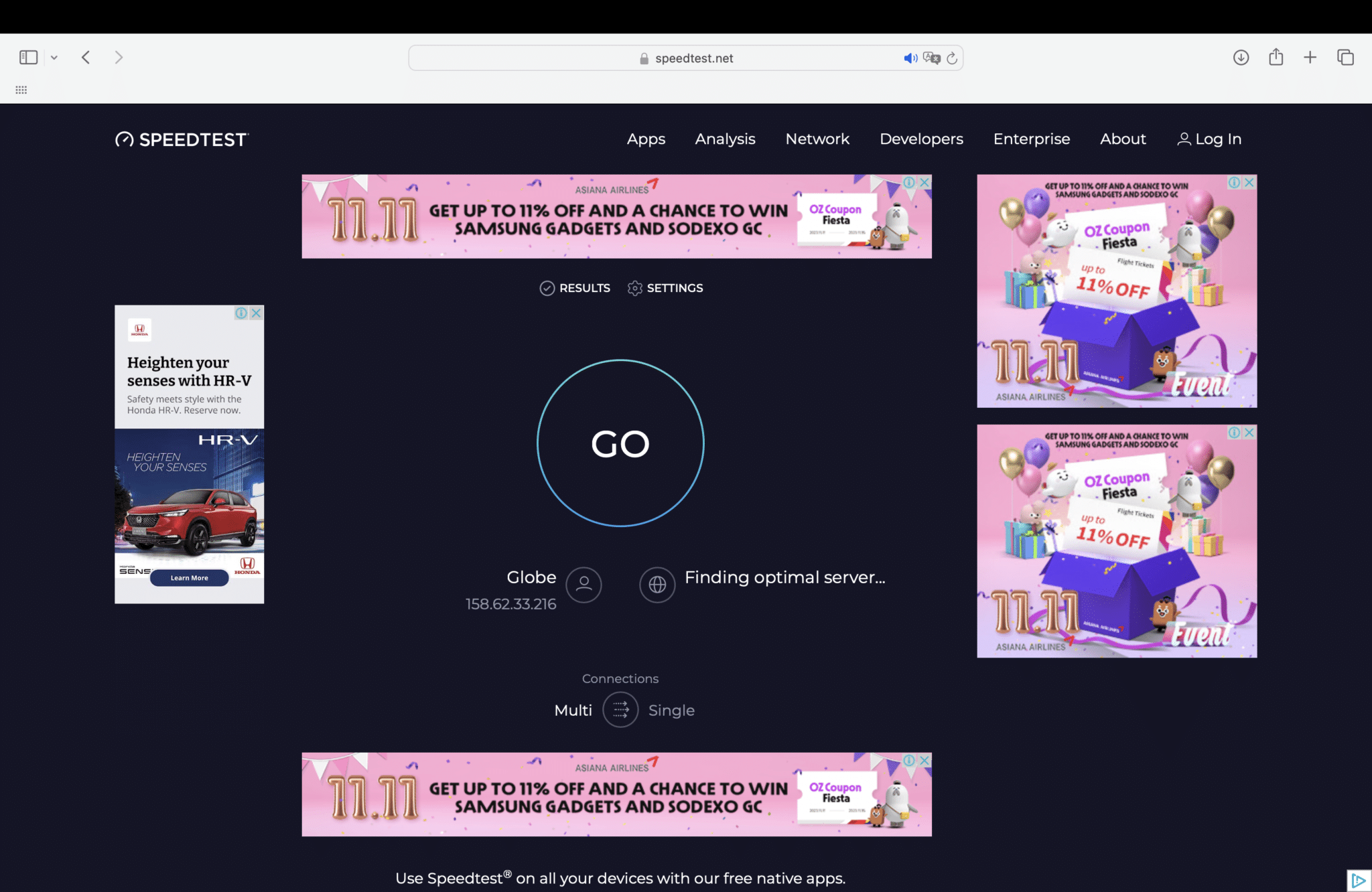 Gibi çevrimiçi hız test sitelerine gidinSpeedtest.netİnternet hızınızı ölçmek için.