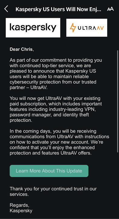 Kaspersky kullanıcıları Ultraav'a geçiş hakkında bilgilendirdi mi?