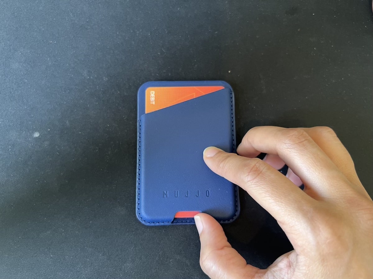 Mujjo deri magsafe cüzdanı, sadece üstten ve arkadan değil, aynı zamanda alttan da cüzdanı iPhone'dan ayırmak zorunda kalmadan en fazla 3 kartı tutabilir.