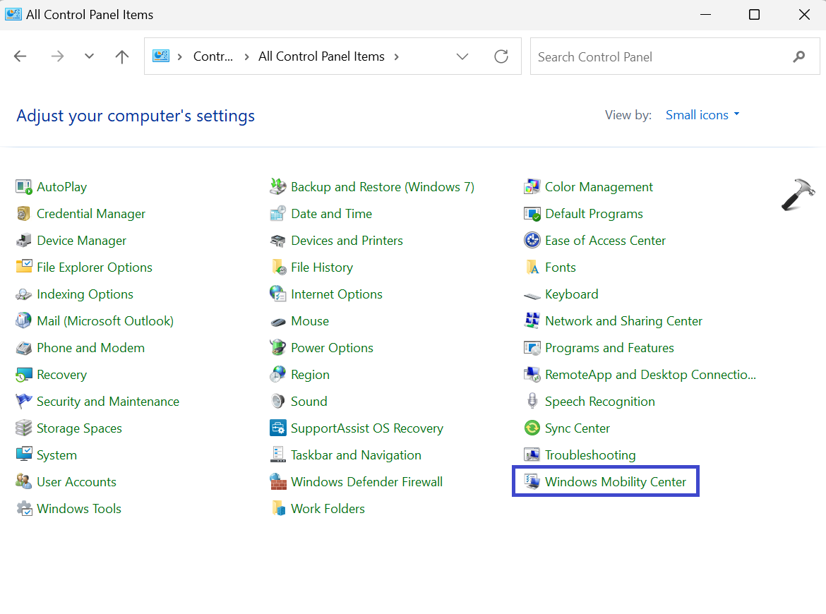 2. Şimdi, Windows Mobilite Merkezi seçeneğini tıklayın.