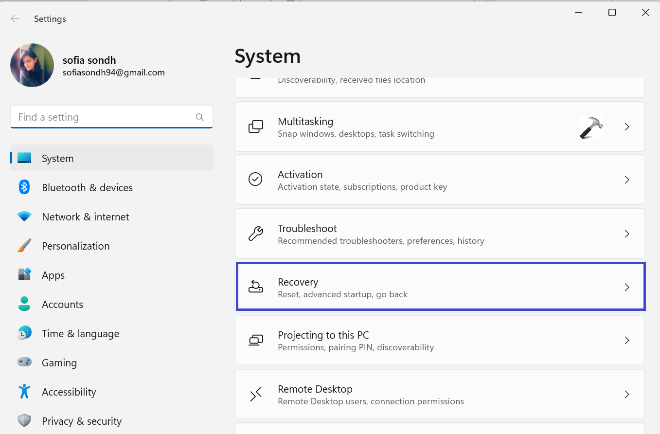 3. İstem kutusunda, Sorun Gideri => Gelişmiş Seçenekler'i seçin.