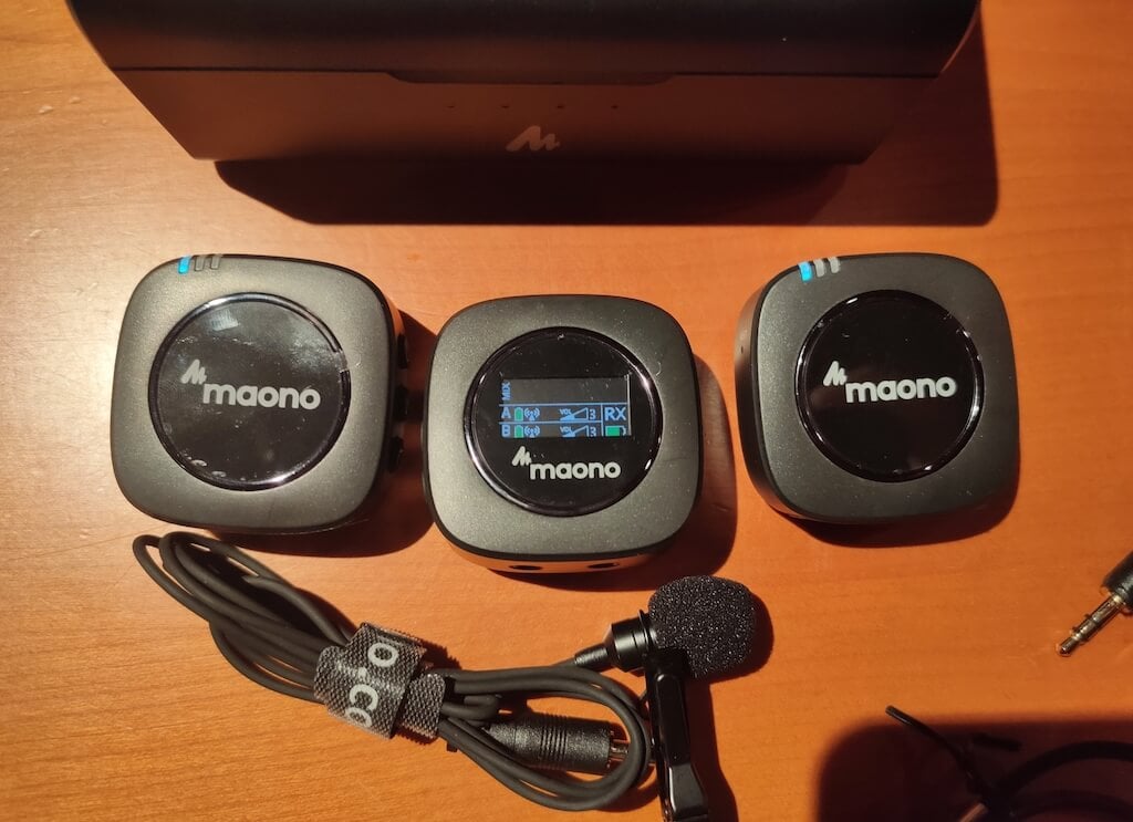Kablosuz mikrofon sistemi yeni bir teknoloji trendidir. Sesi elde eden ve daha sonra belirli bir kablosuz frekans bandı (Maono WM821 durumunda 2.4Hz) aracılığıyla alıcıya gönderen ve videonuzu kaydeden kameraya senkronize eden bir verici ile birlikte gelir. WM821, bir alıcı ve iki vericiyle bunu yapar - aynı anda iki kişiyi kaydetmenize izin verir.