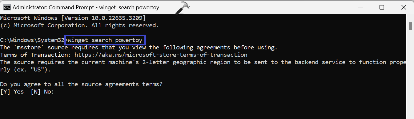 2. Uygun mağaza uygulama adını bulmak için Winget Arama komutunu kullanın. Örneğin, PowerToys uygulamasını aramak için aşağıdaki komutu çalıştırın: