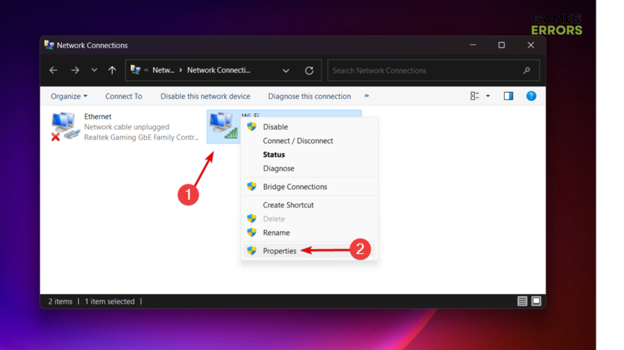 3. Şimdi etkin ağ adaptörünüze sağ tıklayın, ardından seçinÖzellikler.