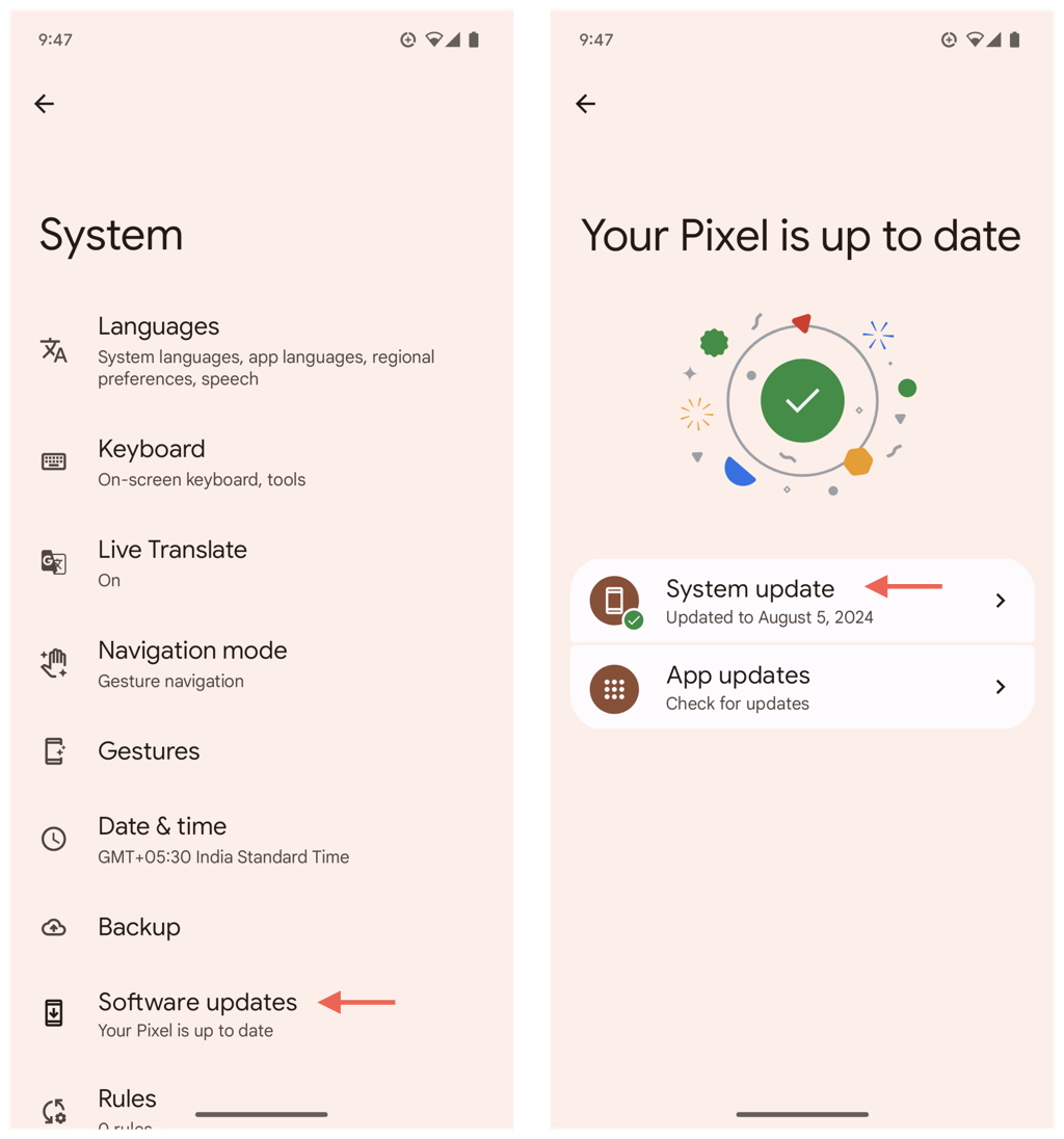- Gidip gelmekSistem>Yazılım güncellemeleri>Sistem güncellemesi.