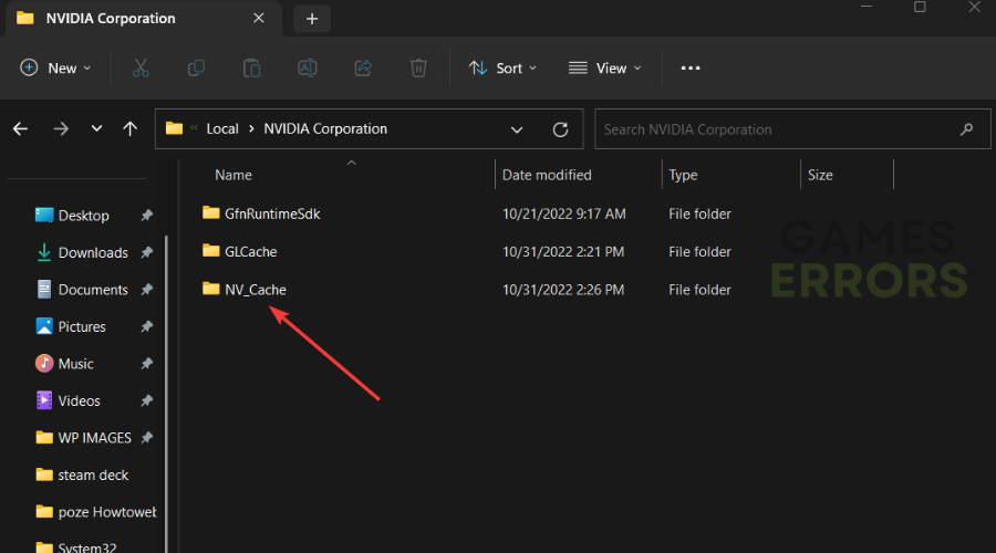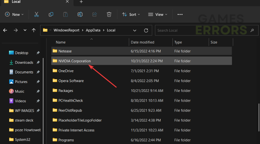 - Geri dön%localAppata%klasör ve bulunNvidia CorporationKlasör, sonra açın.