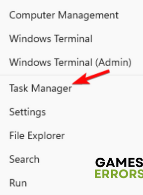 - Sağ tıklayınBaşlangıçDüğme ve Görev Yöneticisi'ni seçin.