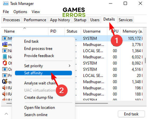 - Ancak, kullanıyorsanız6-12Çekirdek CPU, oyuna ve oyun başlatıcısına sağ tıklayın ve seçinAfiniteyi ayarlamak.