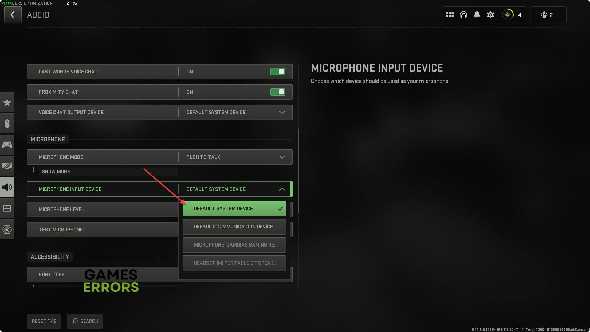 Oyunun ses ayarlarında varsayılan mikrofonu seçmek, MW2'de çalışmayan mikrofonu çözebilir.
