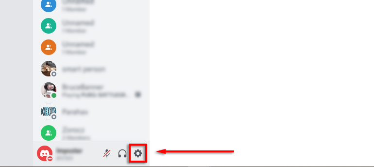 - Uyuşmazlık içinde tıklayınKullanıcı Ayarları(Ekranın sol alt kısmındaki dişli simgesi).