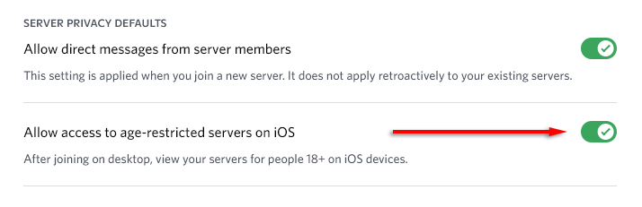 Not:Her bir kanalınız için bu ayarı değiştirirseniz sunucu sahipleri tüm NSFW sunucularını yapabilir.
