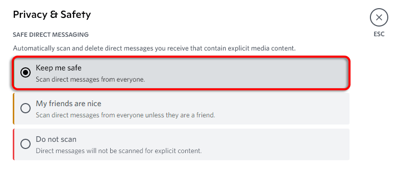 Bu ayar etkinken, Discord herhangi bir doğrudan mesajda açık içeriği tarar ve gizler.